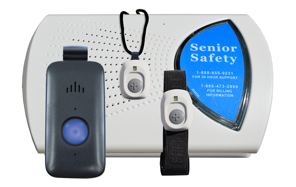 The home alert system comes with a base unit and (1) wearable help button. You can choose between a necklace or wristband when ordering. Your order will also come with a Vial of Life kit where you can provide Life saving information for first responders to have on hand in the event that you need to help. Additional accessories, like extra help buttons and lockboxes are available for purchase and can be included with your order.